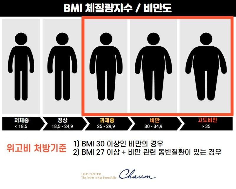 - BMI 27 이상 + 대사질환 (고혈압, 당뇨병 등) 보유